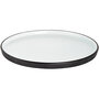 Bord rond model met mooie opstaand randje, dit bordje is 1,6 cm hoog en heeft een doorsnede van 20 cm. Zwarte buitenkant met witte binnenkant, gemaakt van porselein. Merk Maastricht Porselein.