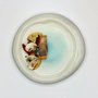 Origineel bord met onregelmatige rand en vorm, 25 cm diameter van het merk Q Raw uit de lijn Blue Lagoon. De kleur is licht grijs met azuur blauw en het bord is gemaakt van stoneware. Dit betekent dat het op een hogere temperatuur is afgebakken en bijna net zo sterk is als porselein. Hele originele vorm, reactief glazuur dus geen enkel bord is precies hetzelfde.