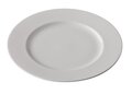 Plat rond bord met een doorsnede van 30,5 cm en brede rand met subtiele print. Uit de Rain lijn van St. James. St. James servies is licht off white servies, vervaardigd uit Fine China. Hoogwaardig hotelporselein. Licht van gewicht een verlichting van de last voor het personeel.