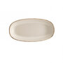 Hotel-kwaliteit porseleinen ovalen bord van Bonna Retro. Het samenspel van de vormgeving met de ivoren kleur van deze servieslijn geven alle ruimte aan de kok om de gerechten op een eigentijdse creatieve manier te presenteren.- Afmeting: 34 x 19 cm