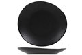 Plat bord zwart in redelijk ovale vorm, afmetingen 22,2 x 20,3 cm. Dit bord komt uit de moderne Vongola lijn van Cosy&Trendy. Speciaal horeca servies.