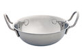 Schaal in de vorm van een soort wokpan met 2 handvatten, vervaardigd uit RVS (inox). Afmeting 15 cm doorsnede en 4,5 cm hoog. Geschikt voor horeca gebruik. Van het merk Cosy&Trendy.