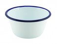 Schaaltje met een doorsnede van 12 cm en 6 cm hoog, gemaakt van emaille. Inhoud 500 ml. Voor een originele presentatie van bijvoorbeeld snacks. Leuk in combinatie met Acacia hout, olijfboomhout, vetvrij papier en glaswerk. Geschikt voor horeca gebruik.