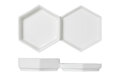 - Bijzonderheden: Twee kleine borden aan elkaar vast gemaakt met verschillende hoogte. Leuke manier om onderscheid in het te serveren gerecht te maken.